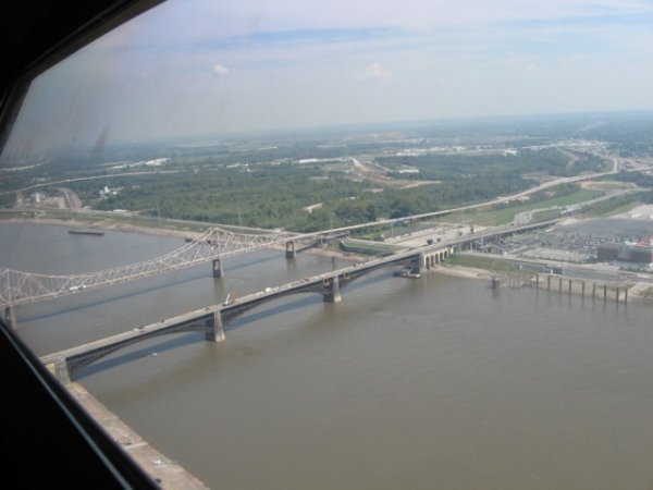 St. Louisians will recognize these images as the St. Louis Art Museum, the inspiration (minus the stolen paintings part) for “Forest Park Art Museum” located at the top of the same hill in Serena Jones’ fictional St. Louis world. The painting in the bottom corner is a Monet exhibited at SLAM. Click the image if you’d like information about visiting the real thing. It’s free!!!These are snapshots of the hospital near Forest Park where Serena finds herself on several occasions.St. Louis’ iconic arch and the view from its peek. Yes, I braved those tiny little cars that Serena wouldn’t be caught dead in so I could snap these pics for the bonus features. 🙂