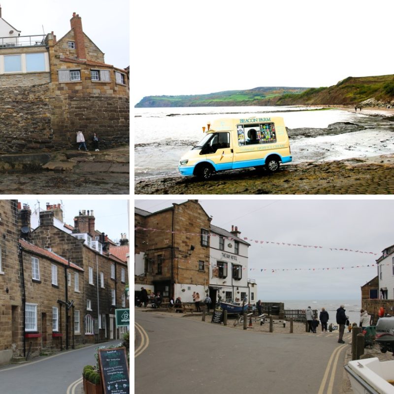 The church depicted on this street was reimagined as a community church with a white-washed exterior based on a circa 1848 Wesleyan Chapel in Hull and an interior based on a church overlooking Robin Hood’s Bay that I was able to visit:
