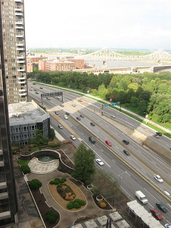 I’ve been having so much fun meeting old friends and making new ones that I’m afraid I haven’t taken many photos. Internet access is also difficult, but here are a few that I’ve managed to download. Later, I want to add a cool photo I took of The Arch emerging from the fog behind the state building. Tracie Peterson gave the opening address yesterday…very entertaining. Hopefully, later I’ll get a close-up picture. I’ve gained notoriety for locking my roommate out (long story), but Brandilynn Collins had fun roasting me from the platform. Now, just about everyone knows my name!! And my books in the conference bookstore have sold out!!!
